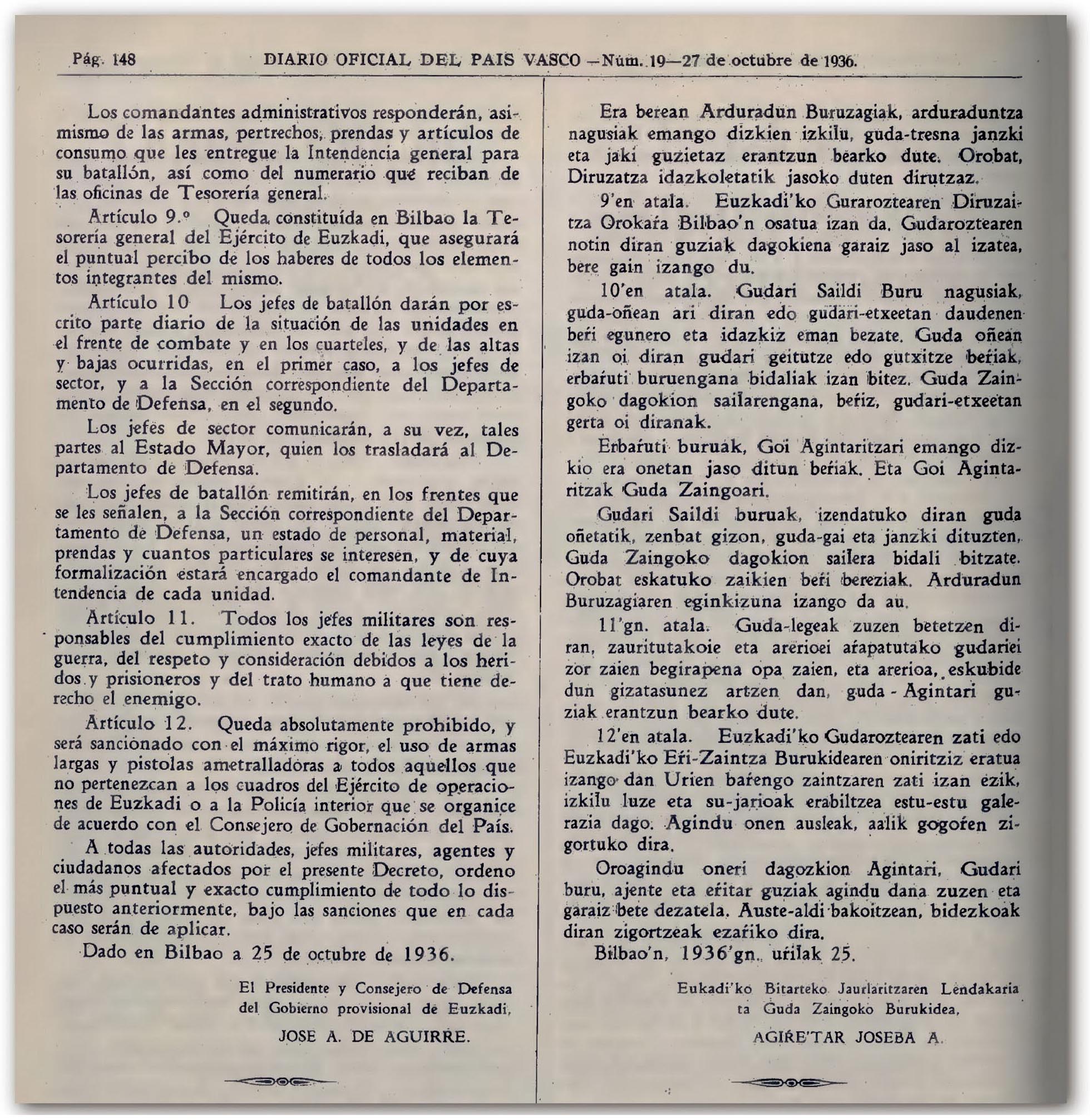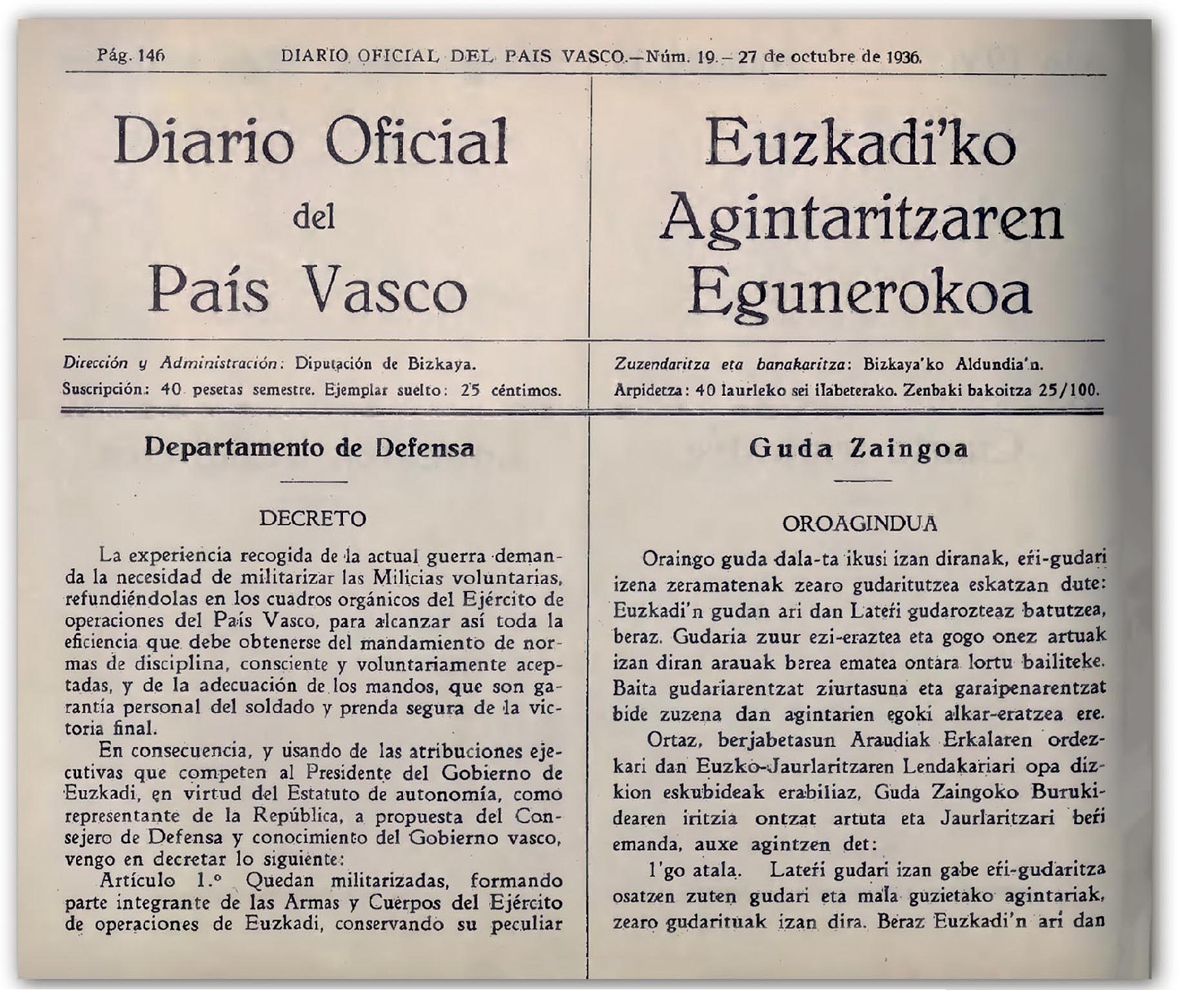 (Euzkadiko Agintaritzaren Egunerokoa, 1936/10/27).