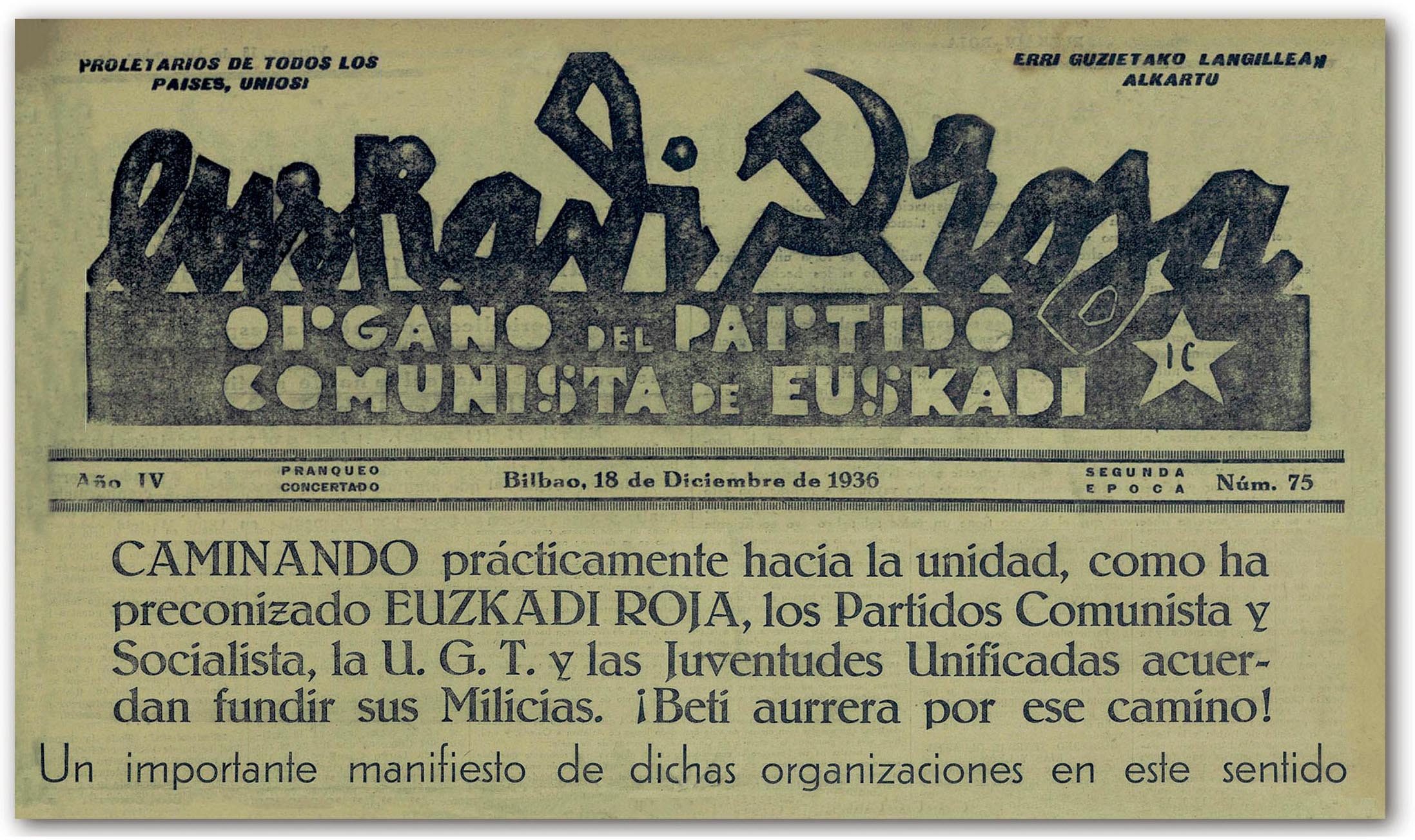 Beraz, Eusko Gudarostea ez zen Eusko Jaurlaritzaren armada izan, EAJren, ELAren, ANVren eta EMB-ren milizia bateratuak baizik. Beste aldean, ezkerreko gainontzeko alderdiek —CNT izan ezik— Euskadiko Fronte Popularra eta hari atxikitako Herri Milizia Antifaxistak (Milicias Populares Antifascistas) edo Milizia Bateratuak (Milicias Unificadas) deiturikoak sortzen hasi ziren. Azken egitura hau maiatzean desegin zen, apirilean armada erregularreko gorputz bakarra sortzea agindu ondoren: Ejercito regular de Euzkadi, orain bai, Eusko Gudarostea euskaraz[140].