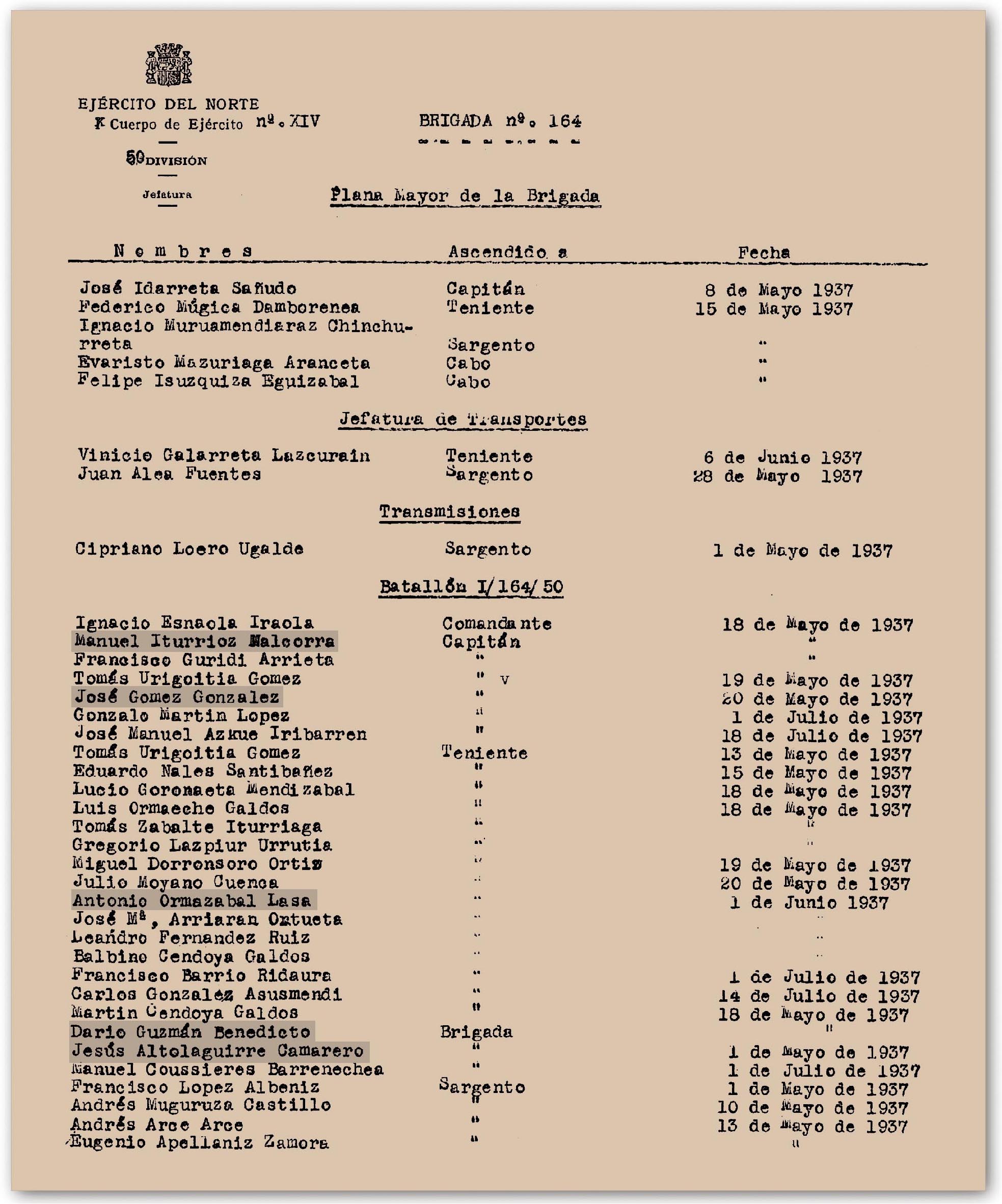 [378] Hauek dira Estatuko Aldizkari Ofizialetan argitaratutako mobilizazio-zerrendak. Honek ez du esan nahi pertsona guzti hauek mobilizatu zirenik. Izan ere, Victoriano Izaguirre Irura, adibidez, Armada Frankistarekin borrokan hil zen 1937an.