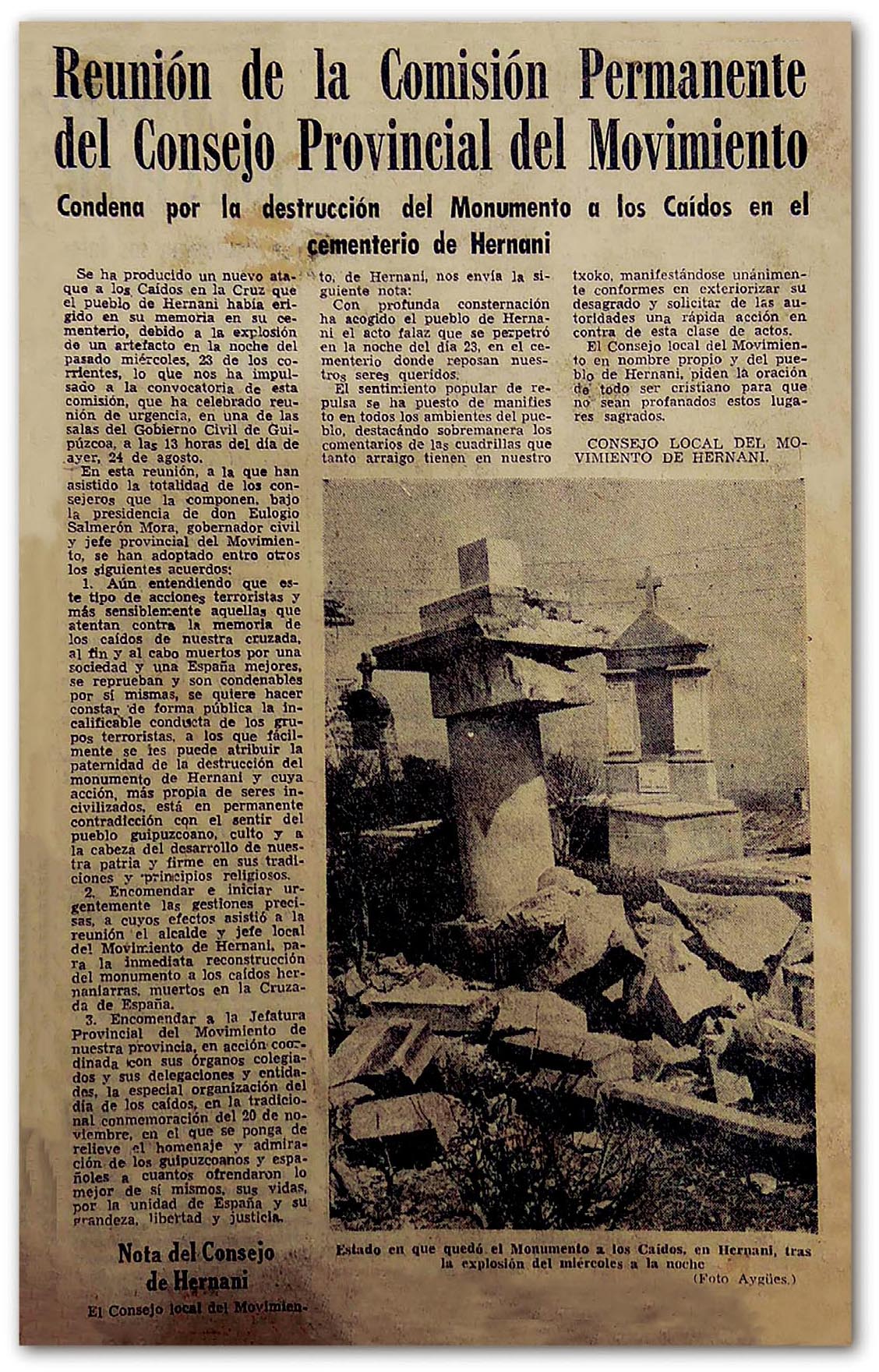 [374] HUA / AMH // HUA / AMH // E-5-II-27/5. Guerra de 1936. Combatientes de Hernani caidos en la lucha (1937 - 1938 / 1956). Monumento a los caidos por España... Traslado al cementario municipal (1949). Voladura (1972), 1937 - 1938 / 1956 / 1972.